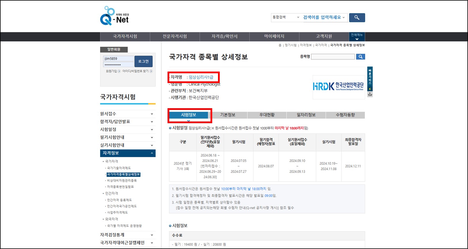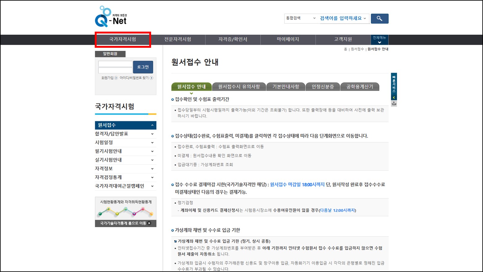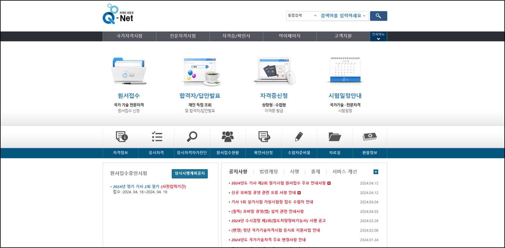 국가기술자격증은 큐넷 홈페이지에서 조회가 가능합니다.
