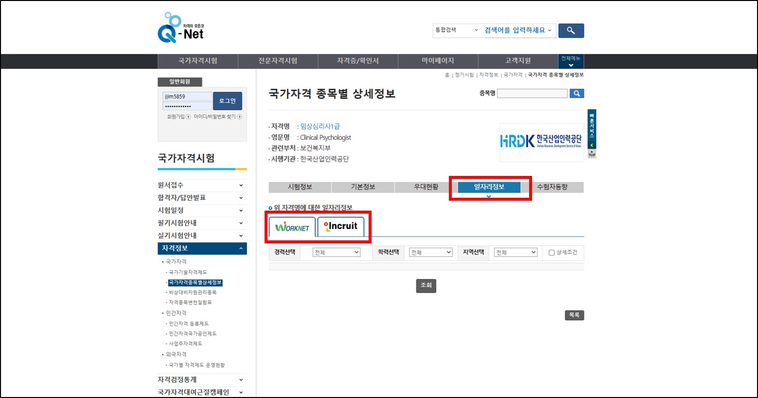 [국가자격종목별상세정보]에서 관련 자격증의 활용이 가능한 일자리 정보도 조회가 가능합니다.