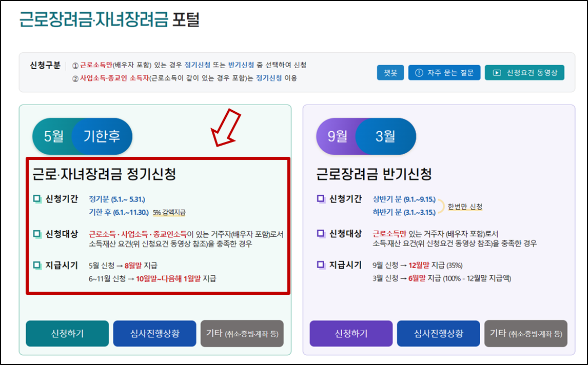 - 하반기 신청(24년 상반기 소득) : 신청일 : 2024년 9월 1일부터 9월 15일까지, 지급일 : 2024년 12월 중순